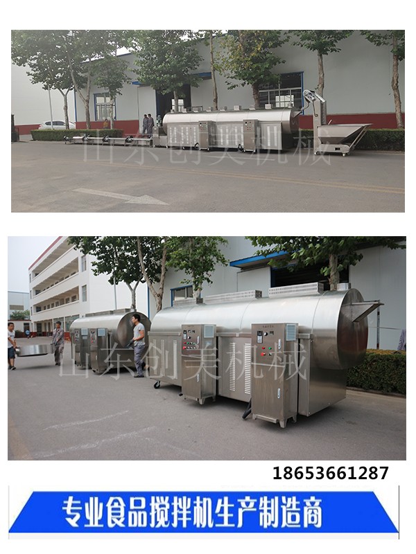 山東創(chuàng)美機械流水線設(shè)備可根據(jù)您需要炒制的物料選擇鍋流水線長度,山東創(chuàng)收美機械有現(xiàn)貨成熟流水線炒貨設(shè)備以及配套設(shè)備,包括提升機、冷卻床、振動過濾風(fēng)選機等。詳情可咨詢客服18653661287,、保護熱量不能向外散放,熱效率可達(dá)95%以上,比傳統(tǒng)的電加熱烘炒設(shè)備節(jié)電45%以上。